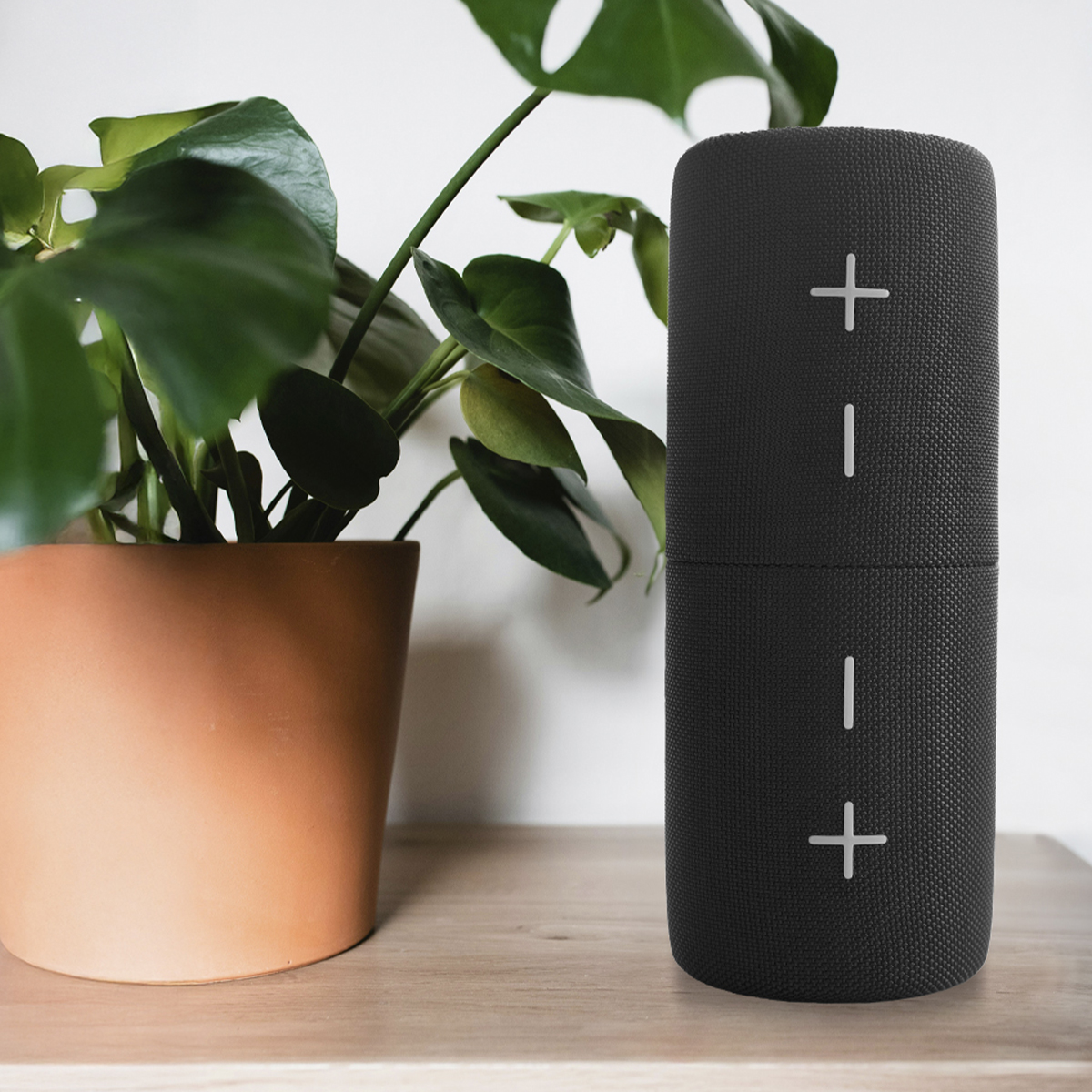 Se divide fácilmente en dos mitades con unión por clic, para usar como altavoces independientes o juntos con una potencia total de 40 W.