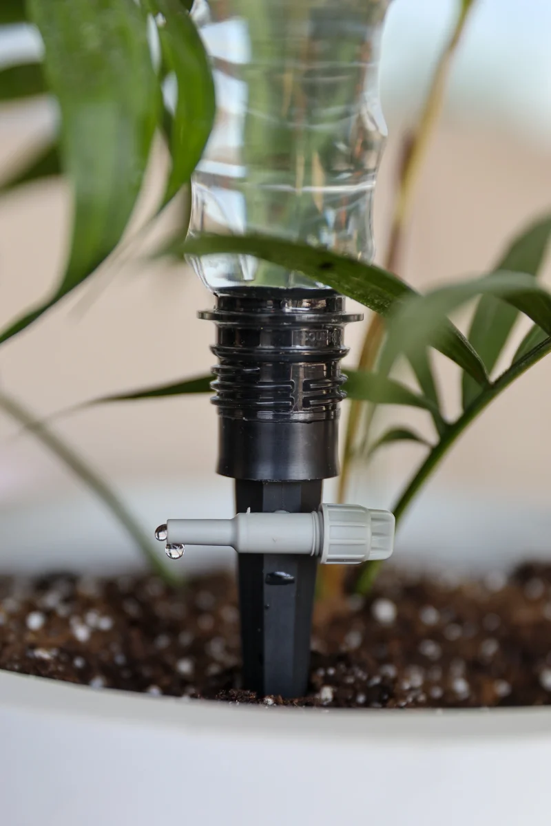 - Inserta el sistema de riego en la tierra cerca de las raíces de la planta.