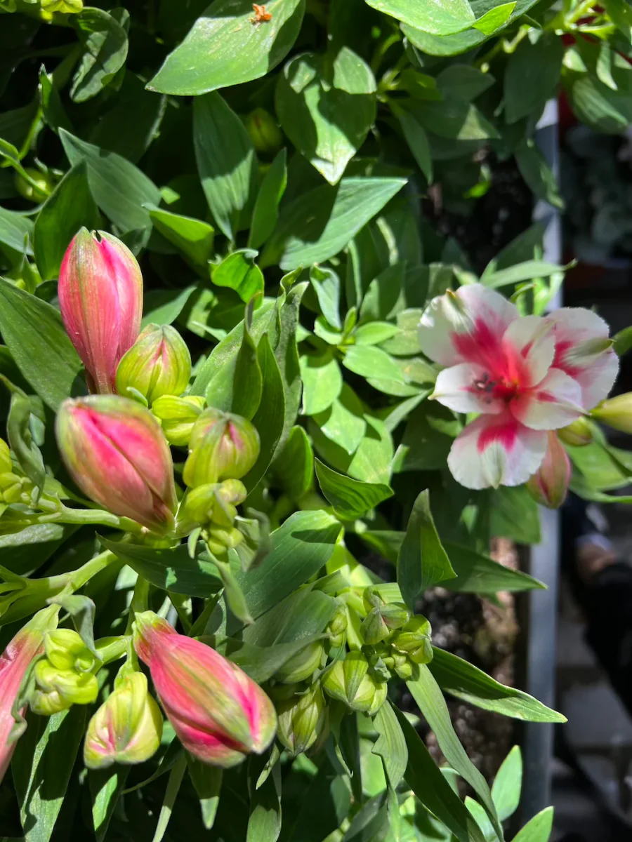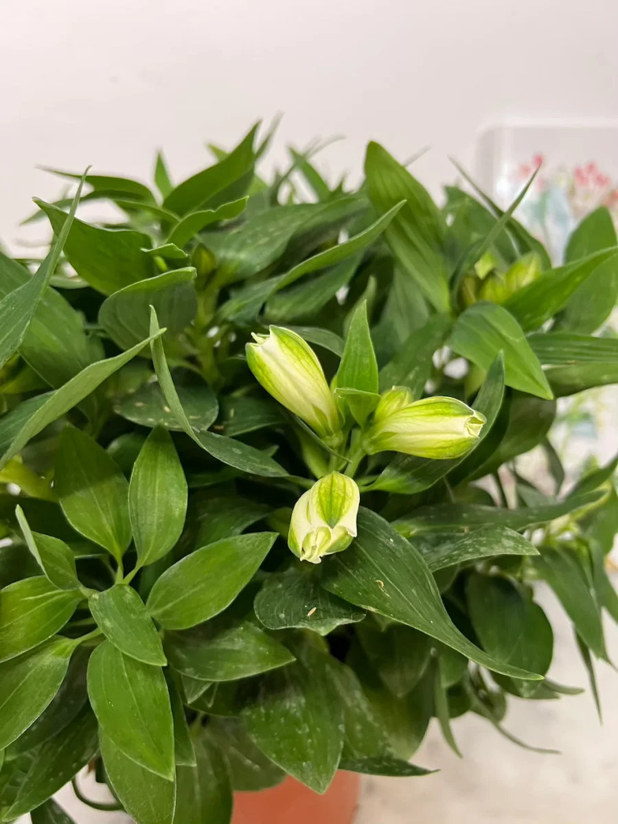 - Astromelia, la planta, mide entre 40 centímetros de alto aproximadamente, la altura final llegó del macetero.