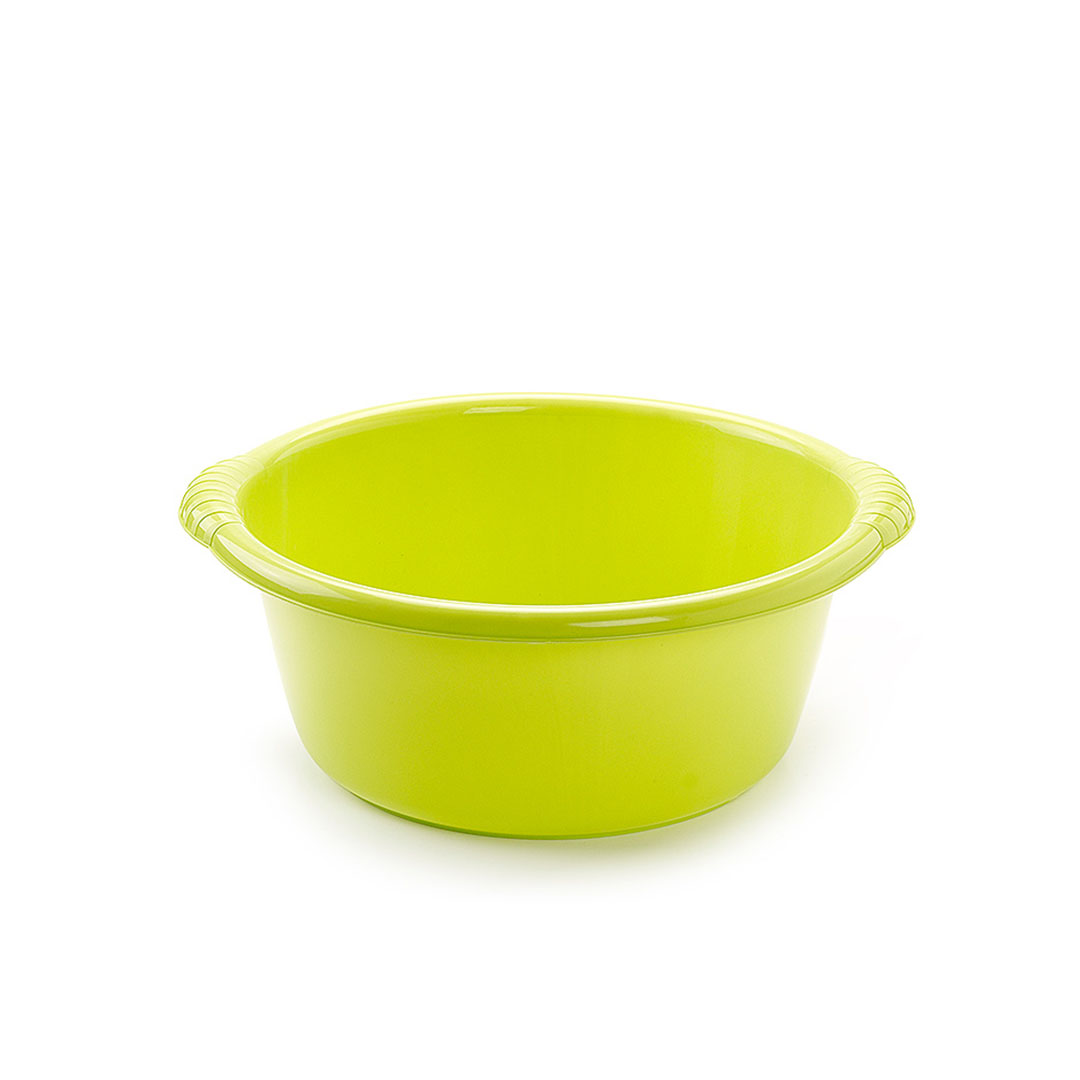 Barreño redondo de 8 litros de capacidad con dos asas laterales para mayor comodidad.