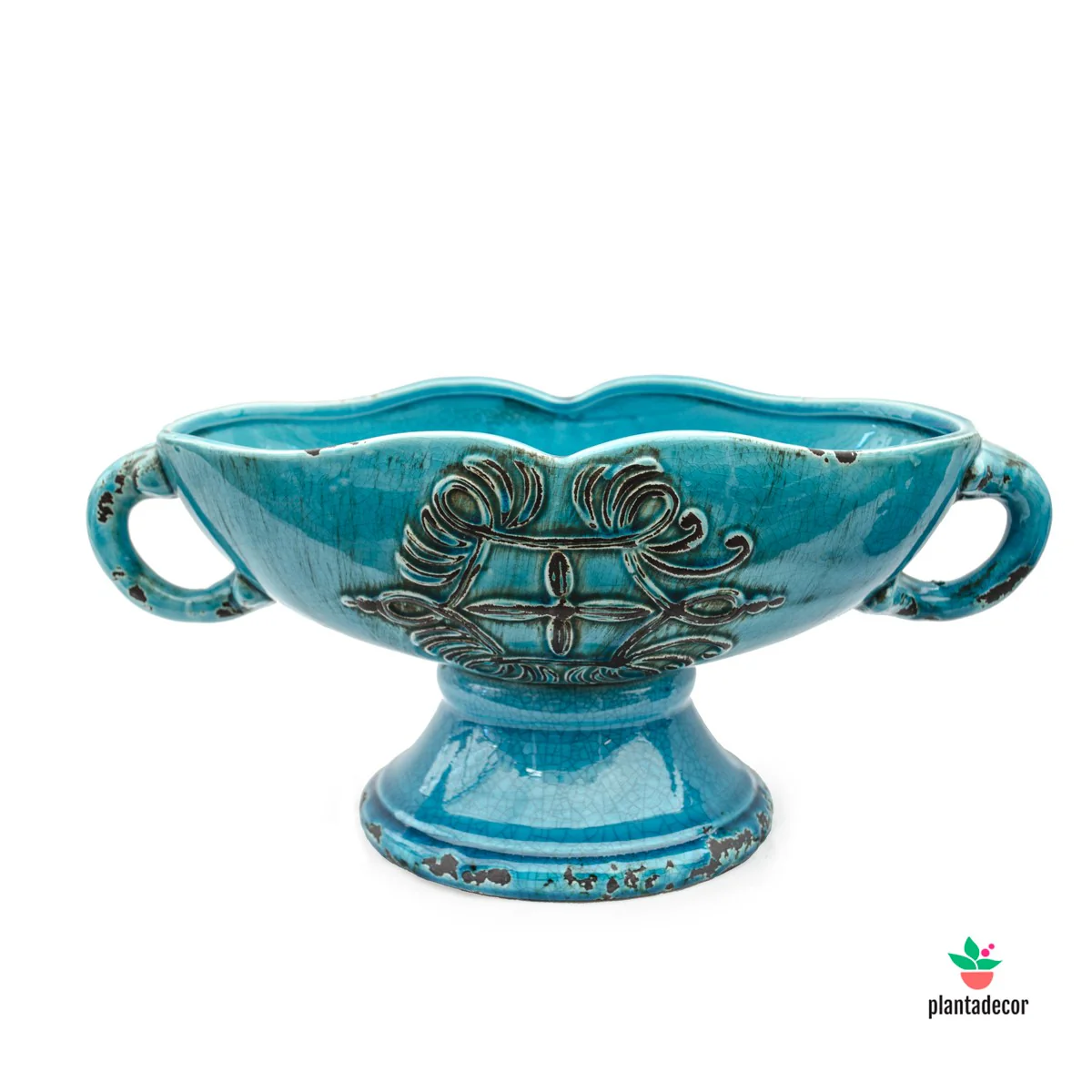 Centro de mesa cerámico de color azul envejecido estilo bohème. Tamaño aproximado: 40 cm de largo por 20 de ancho.