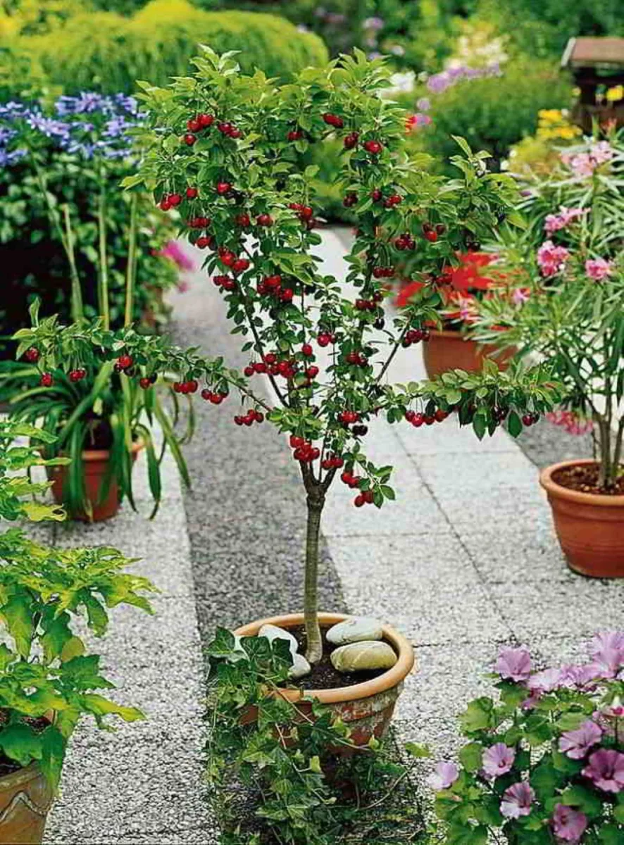- El árbol de cerezo mide entre 0,7 y 1,0 metro desde la base del macetero, la altura final surgió del macetero.