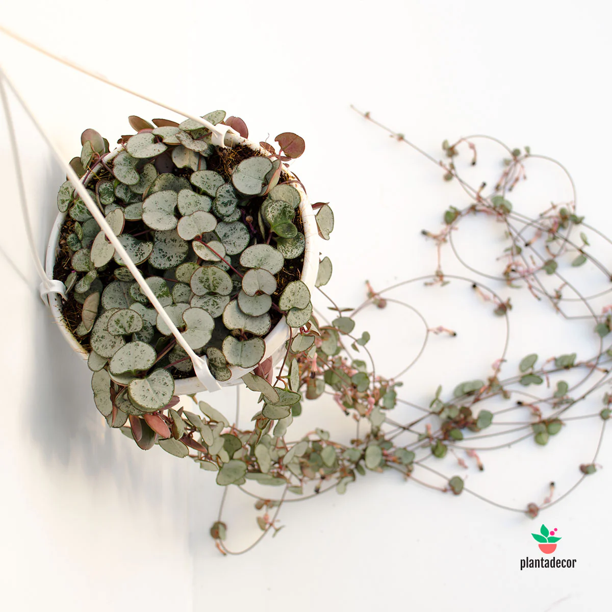 De porte elegante y muy ornamental, forma largas guirnaldas colgantes que pueden superar varios metros de longitud, ideales para macetas colgantes o estanterías. En verano y otoño, sorprende con flores tubulares en tonos púrpura y rosados, pequeñas pero muy peculiares.