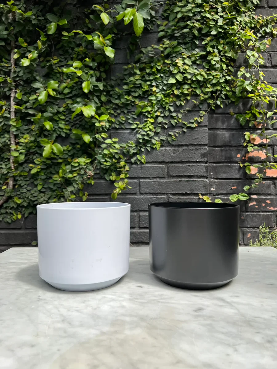 ¡Clásico, sencillo y práctico! Así es este porta macetero de plástico.