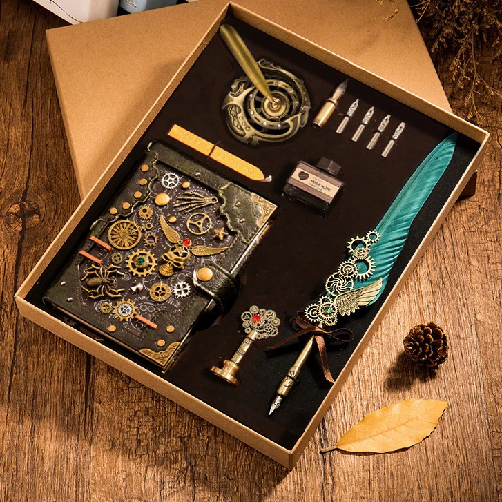 Las páginas en blanco de nuestro Cuaderno Steampunk aguardan ansiosamente para atesorar tus historias, pensamientos y aventuras. Con cada trazo de tinta, te embarcarás en un viaje en el tiempo, donde la pluma se convierte en un vehículo para explorar un mundo imaginario de retrofuturismo. Estos cuadernos son más que meros portadores de palabras; se convierten en testigos de tu creatividad y un lienzo que refleja la elegancia y el encanto de los Objetos Steampunk.
