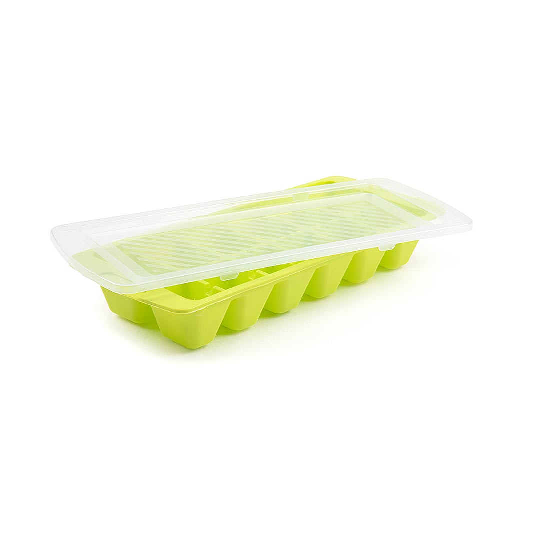 Con esta cubitera con tapa podrás hacer tus cubitos de la forma más limpia y aprovechando al máximo el espacio en tu congelador. Apila tantos como quieras, o bien coloca cosas sobre la cubitera ya que gracias a su tapa evitarás que se derrame el agua. Disponible en variedad de colores. Fabricada en España con matgeriales libres de BPAs.