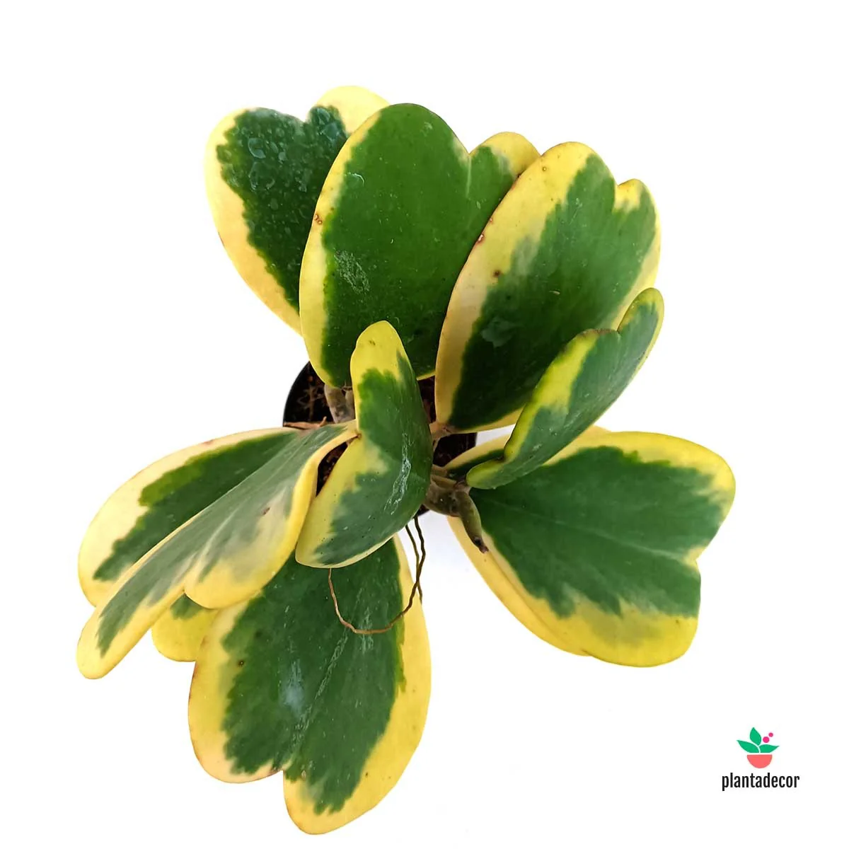 La Hoya Kerrii Variegated es una variedad muy especial y apreciada, conocida por sus hojas gruesas en forma de corazón con una variegación crema y verde que le aporta un aspecto delicado y luminoso. Su follaje carnoso y su crecimiento pausado la convierten en una planta con mucha personalidad, ideal para quienes disfrutan de plantas tranquilas y duraderas.