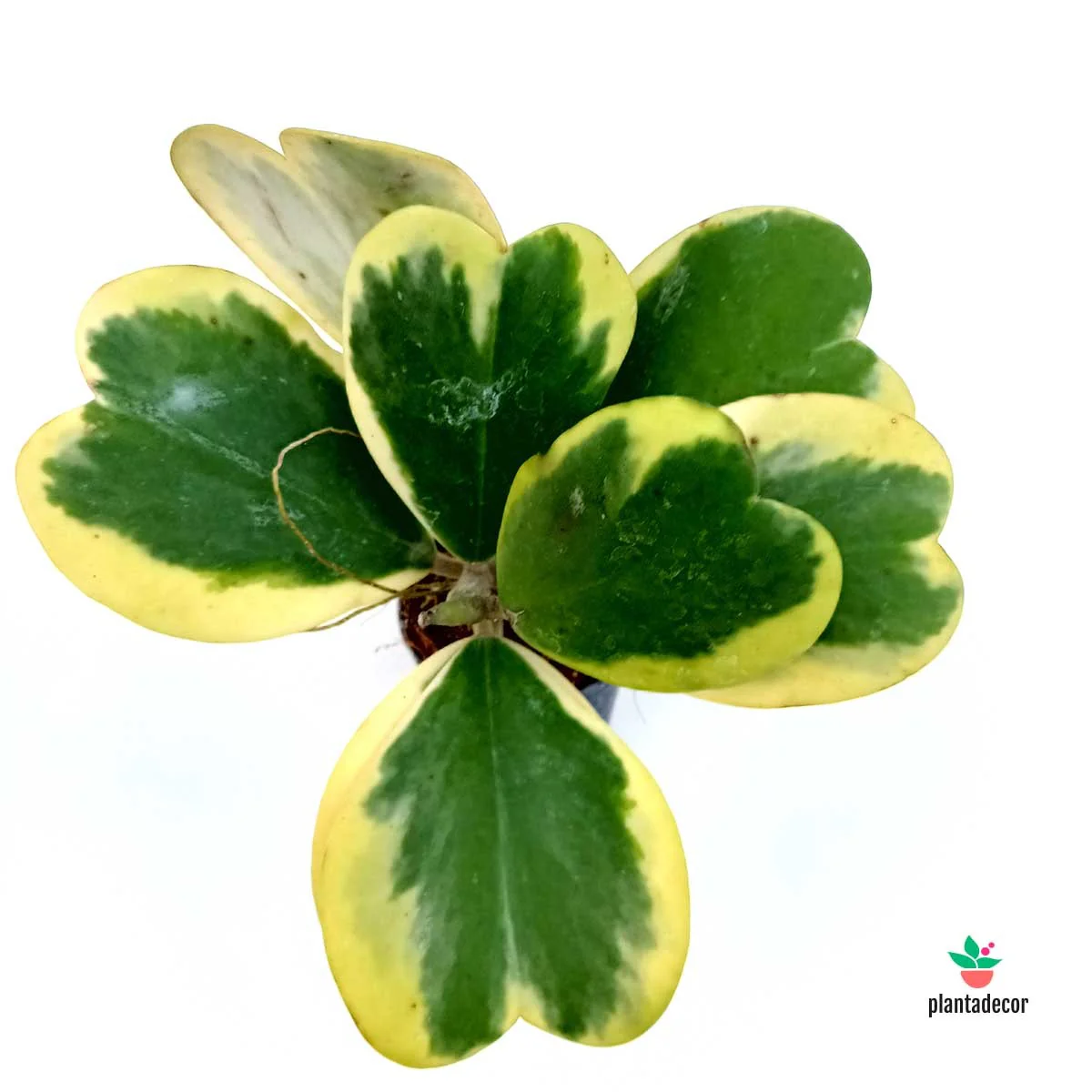 ✅ Hojas carnosas en forma de corazón con variegación crema y verde.