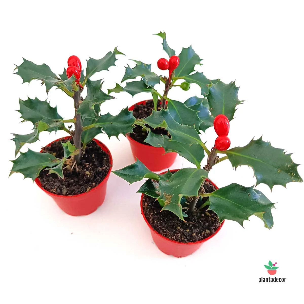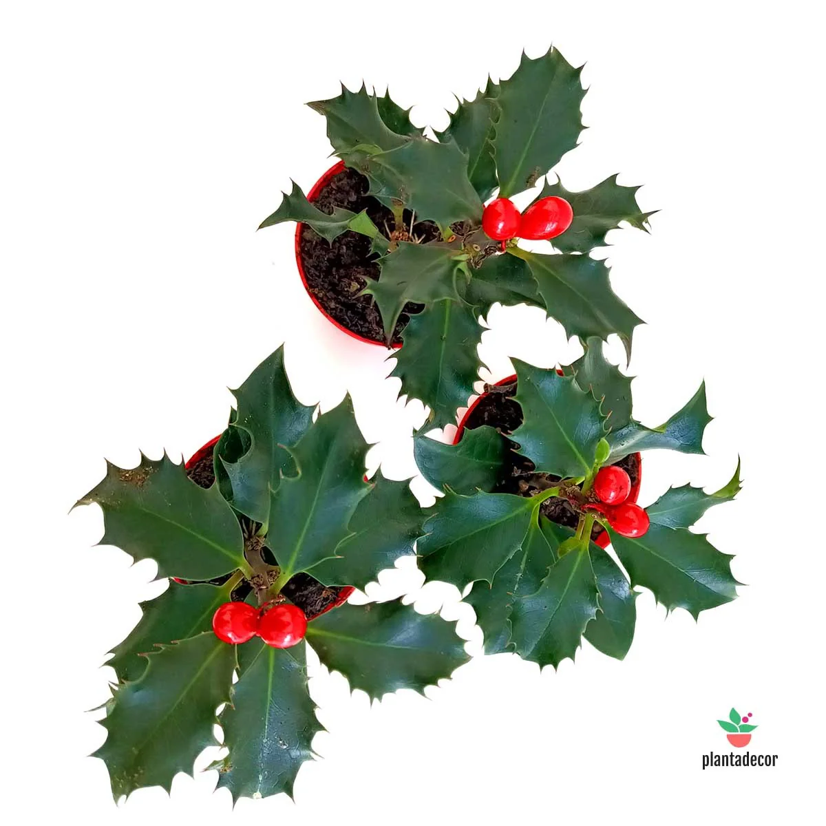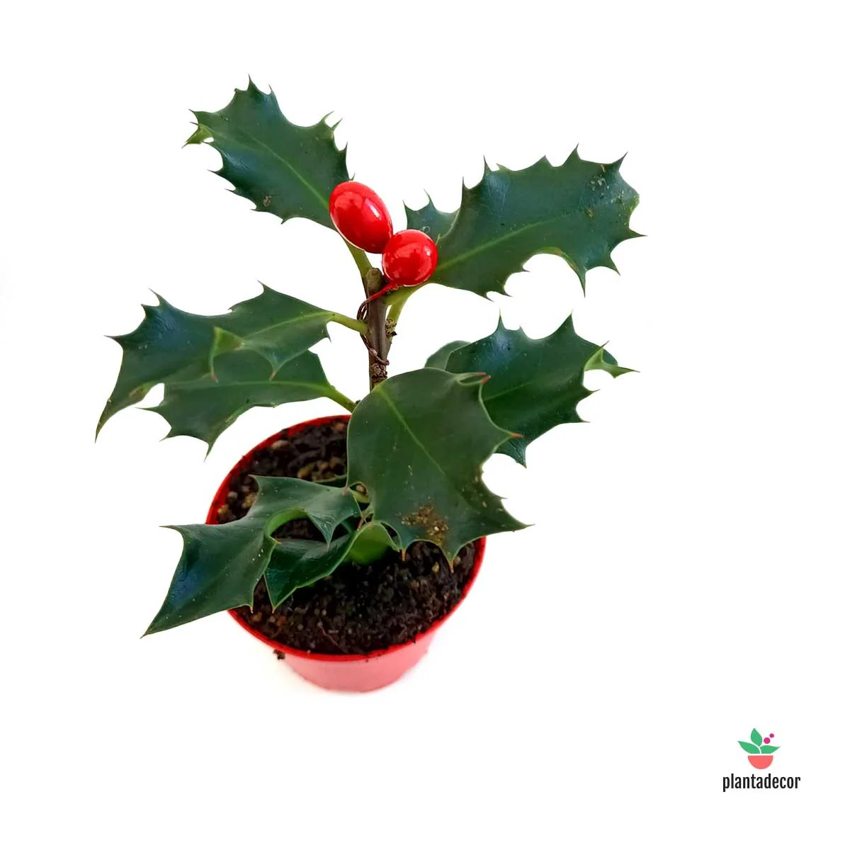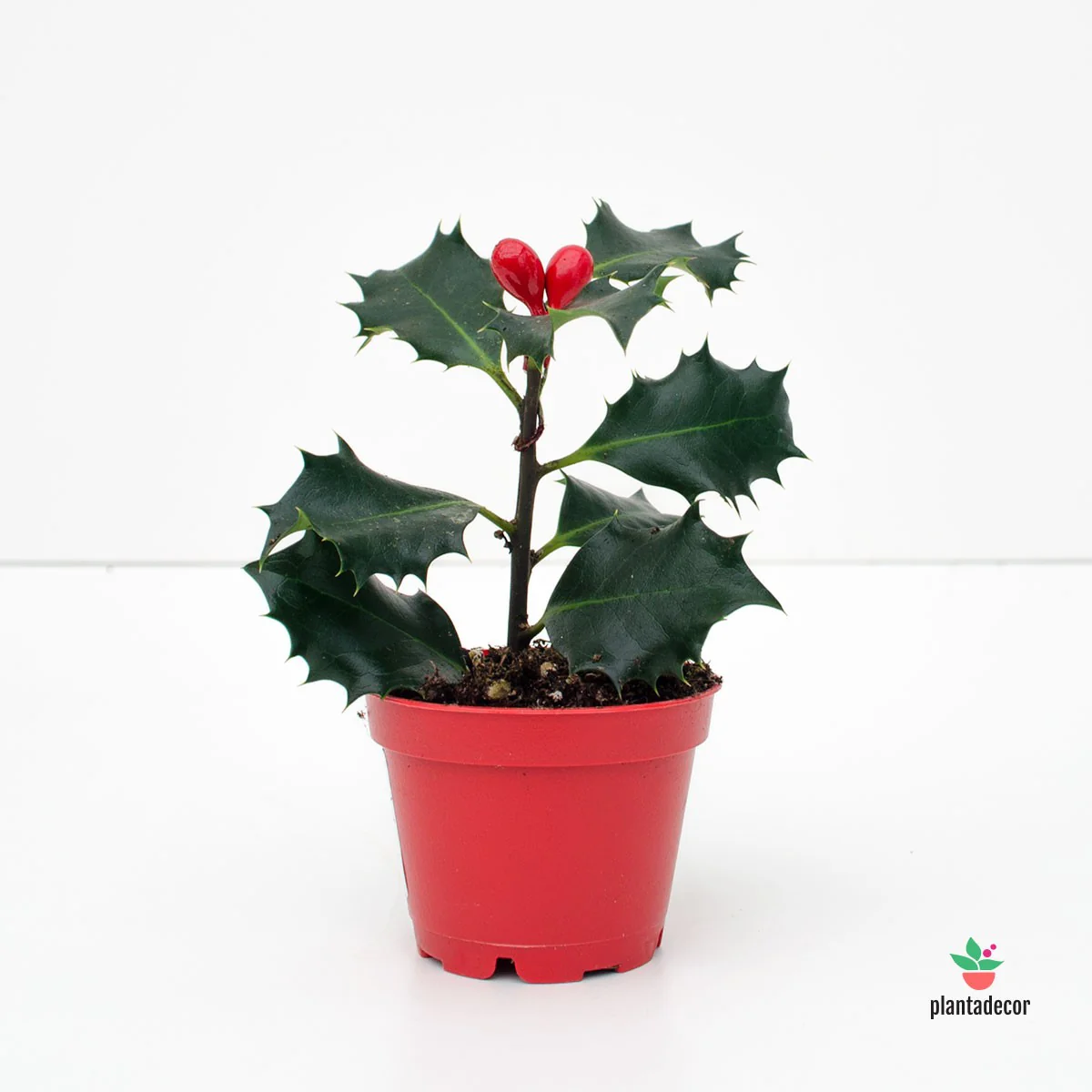La Ilex aquifolium, conocido comúnmente como acebo común, es un arbusto o pequeño árbol perenne de follaje intenso y brillante, famoso por sus hojas verdes coriáceas con bordes espinosos y sus bayas rojas brillantes que aparecen en otoño e invierno. Su porte elegante y estructurado lo convierte en una planta ideal para jardines, terrazas y setos.