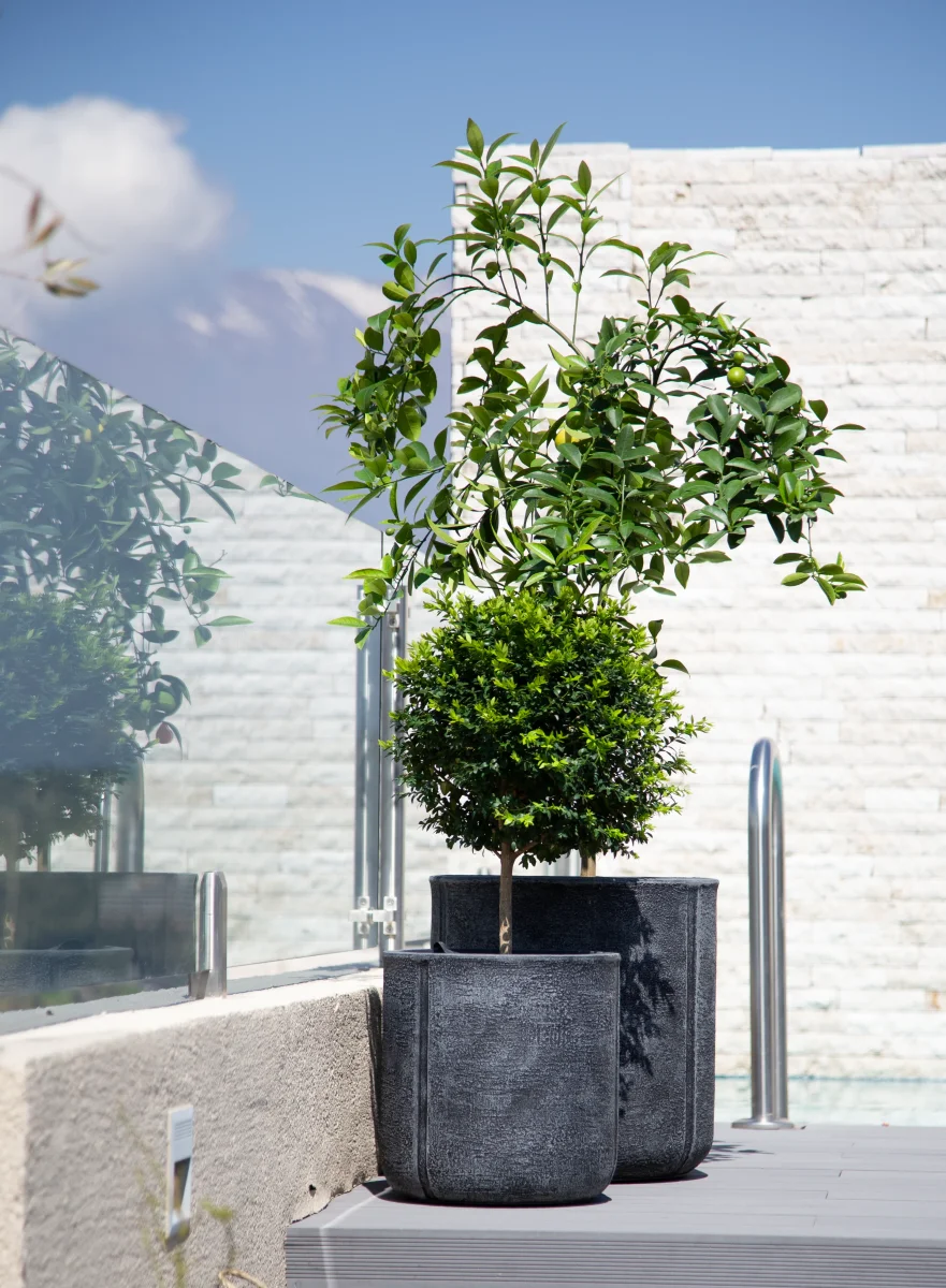 Inspirado en la elegancia atemporal del Mediterráneo, el macetero Ko Samui está fabricado en fibra de arcilla de alta resistencia y acabado gris mate. Su forma cúbica y líneas limpias lo convierten en un complemento perfecto para interiores modernos, terrazas o espacios con un aire costero y relajado.