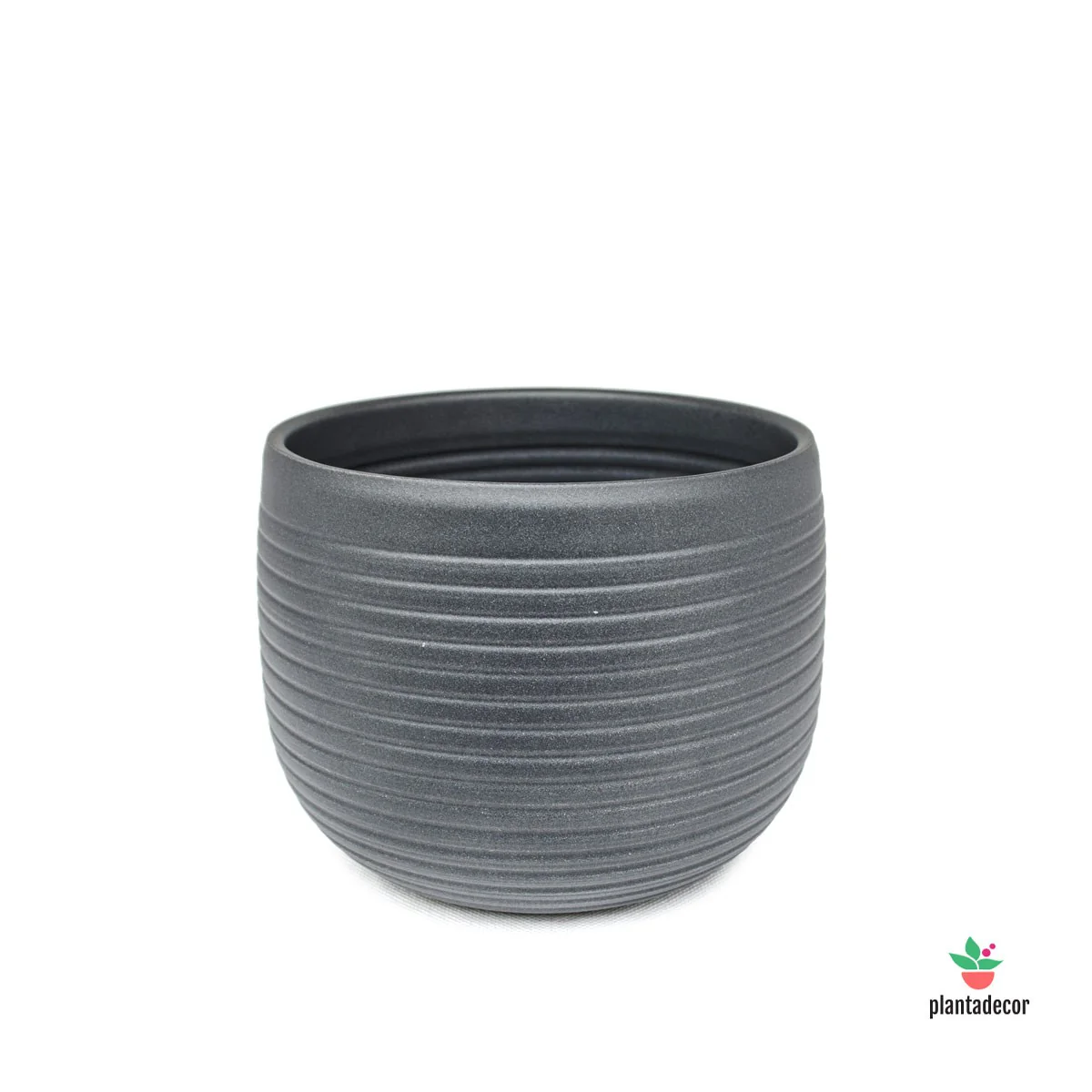 Macetero esmaltado alta calidad, color grafito. Diámetro boca 13 cm.