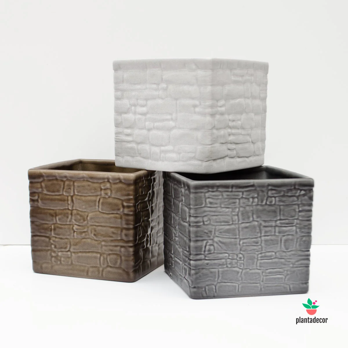 Macetero cuadrado en imitación de acabados naturales. Cerámica. 100% waterproof.