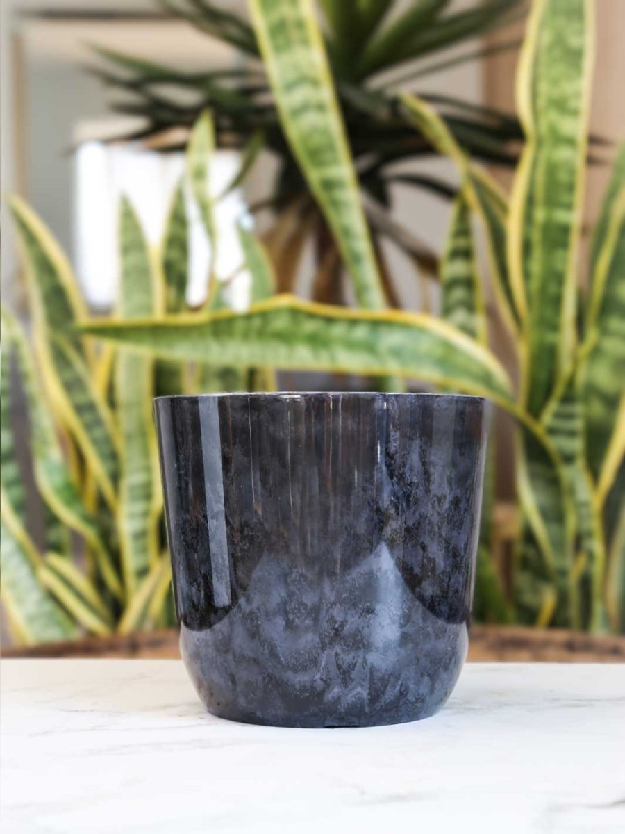 Presentamos el macetero de la línea Madrid, con un diámetro de 13 centímetros. Sus atractivos diseños en blanco, grafito y azul marmoleado le dan un toque moderno y fresco a tus espacios, ideal para complementar cualquier decoración.