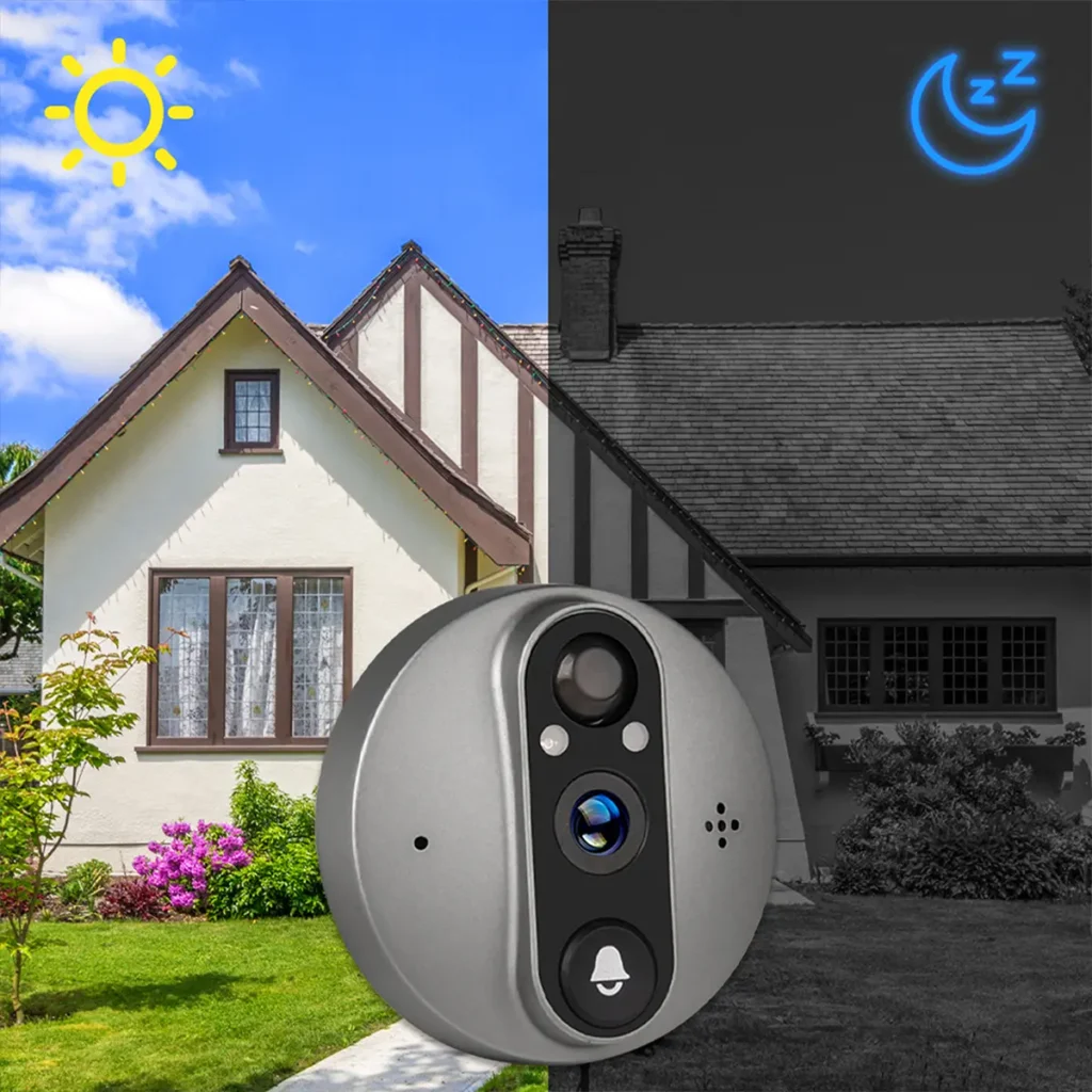 Con resolución Full HD 1920×1080/15fps y un ángulo horizontal de 160º con una distancia efectiva de 5 m, la mirilla asegura una visualización de calidad. Además, gracias a su visión nocturna, ofrece imágenes claras y nítidas, incluso en condiciones de poca luz.