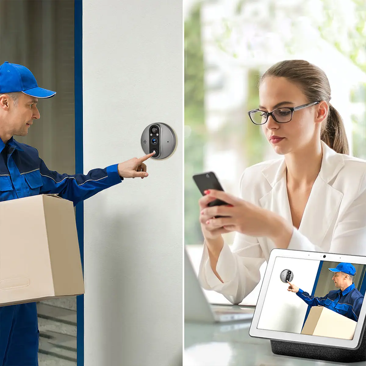 No solo es una mirilla, también cumple la función de timbre, mejorando la accesibilidad. Comunicación clara y en tiempo real con quienes están en la puerta, incluye audio bidireccional ajustable según el volumen deseado.
