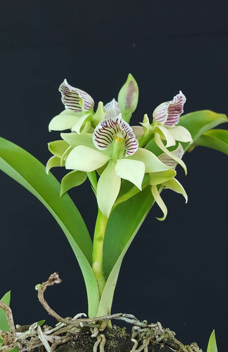 Coloración Distintiva: Los sépalos y pétalos son típicamente de color verde a blanco-verdoso con bordes curvados, creando un aspecto fresco y delicado.