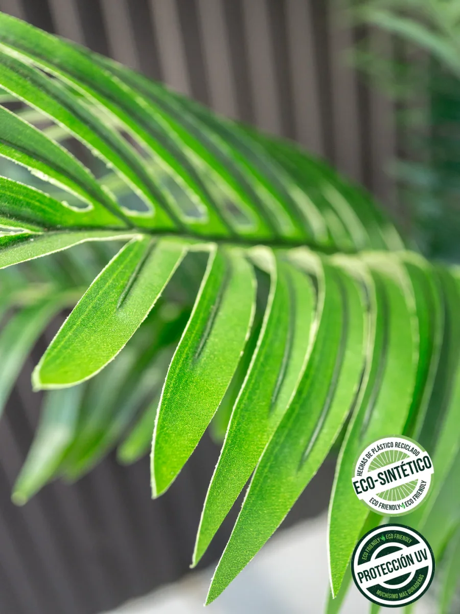 La palmera Areca aporta frondosidad a tus espacios. Recomendamos darle forma a los tallos y hojas abriendo las varas metálicas.