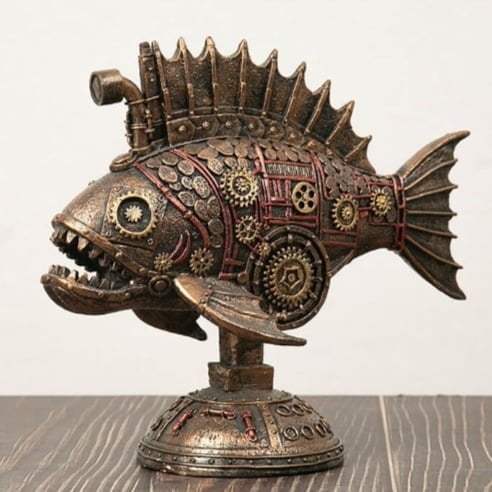 El Pez Steampunk es más que una simple pieza de decoración, es un símbolo de la imaginación y la maravilla que puede surgir de la combinación entre la naturaleza y la tecnología. Cada vez que lo contemples, te recordará que los límites de la creatividad pueden trascender incluso a las profundidades del océano. Ya seas un amante del Steampunk, un apasionado del mundo marino o simplemente alguien en busca de una pieza única y llamativa para tu decoración, el pez Steampunk se convertirá en el punto focal de tu espacio.