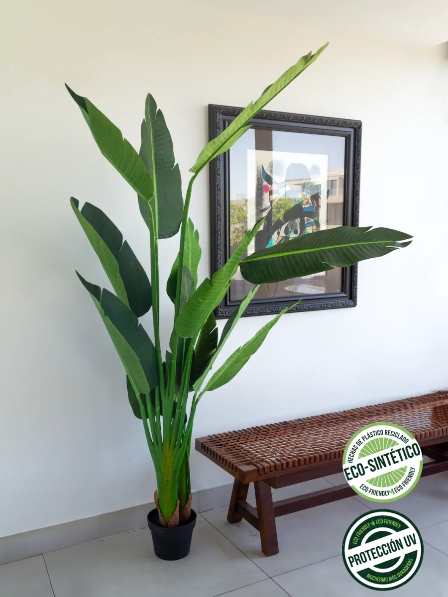 Si quieres una planta que llame la atención la Strelitzia Nicolai será una buena opción, muy frondosa, de gran altura y hojas anchas en distintos tonos de verde. Perfecta para el living, terraza o espacios amplios.
