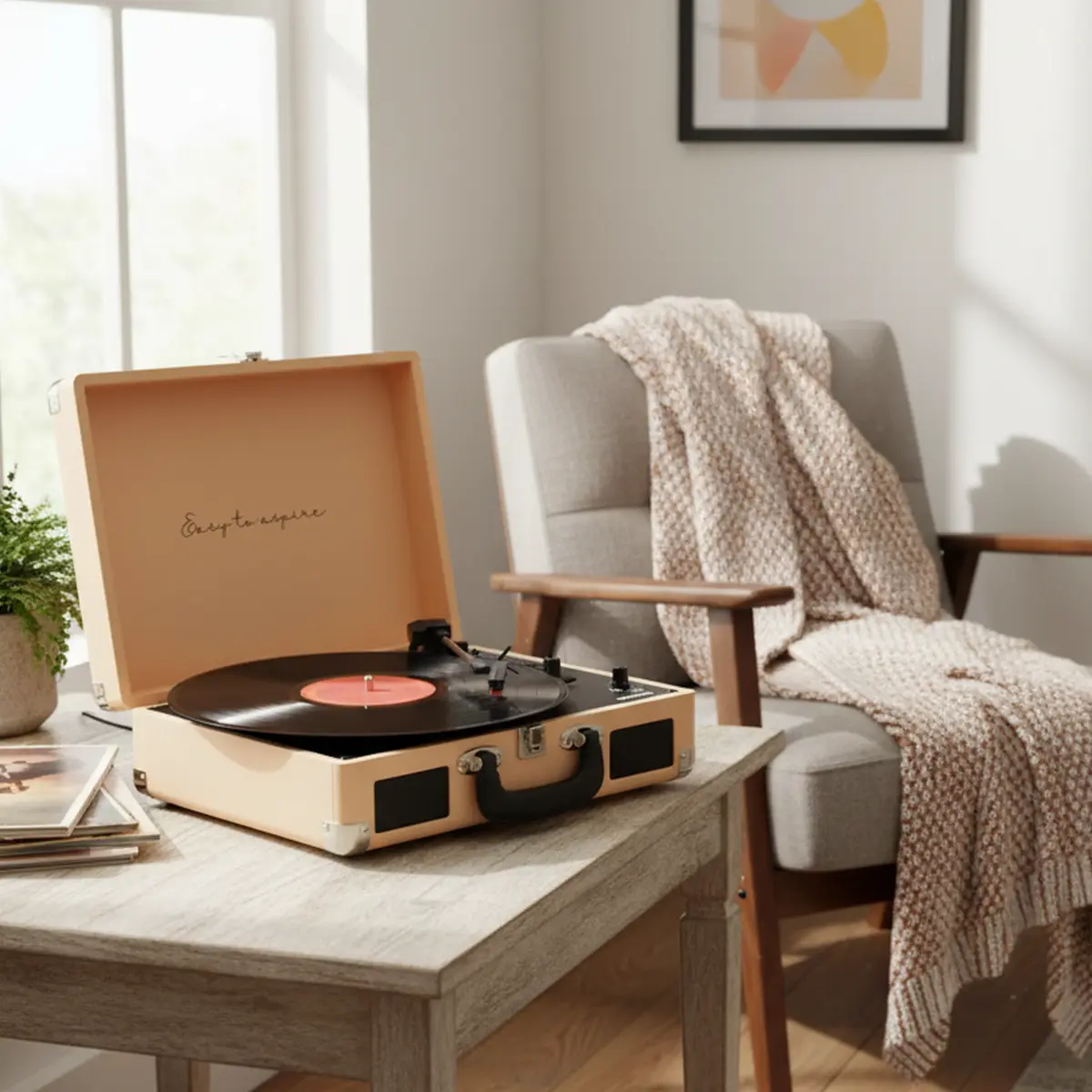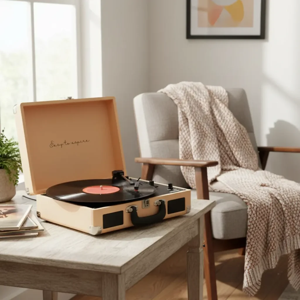 No solo servirá como un reproductor de música. Gracias a su diseño y estética puedes decorar tu hogar y darle un toque vintage a tu salón o habitación. Además, su diseño con forma de maletín hace que sea fácil de transportar.