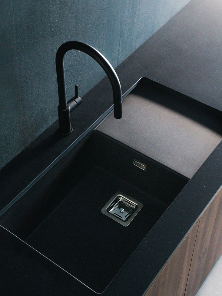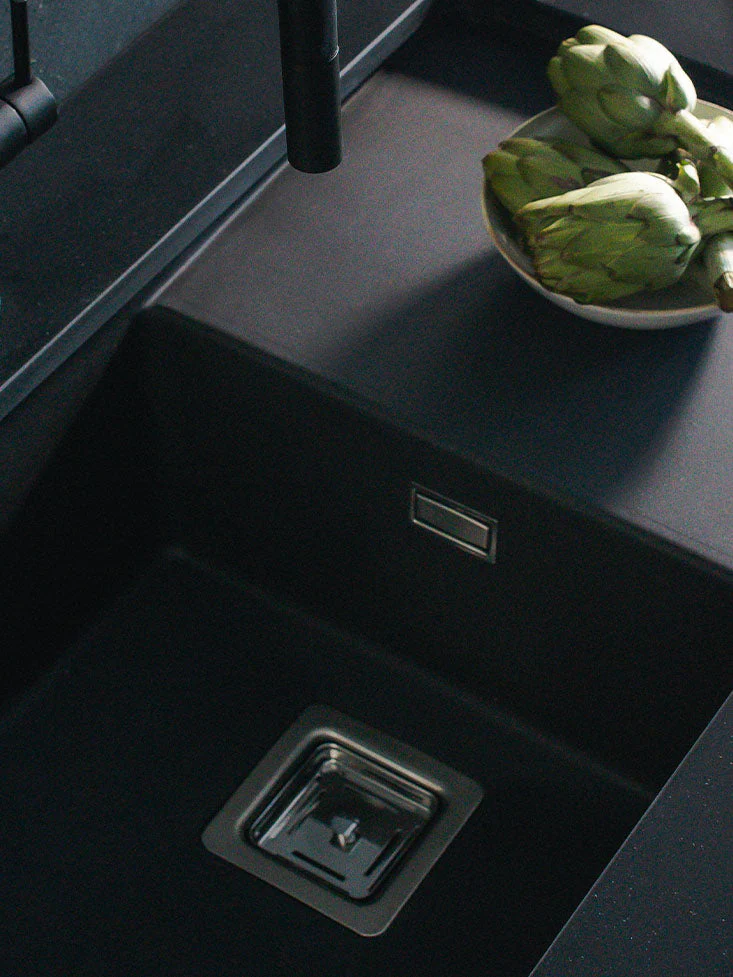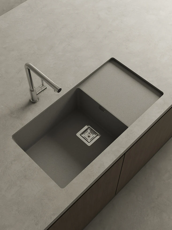 Fabricado en nuestro material en masa Hekla®, este fregadero de granito resiste a todos los factores externos.
